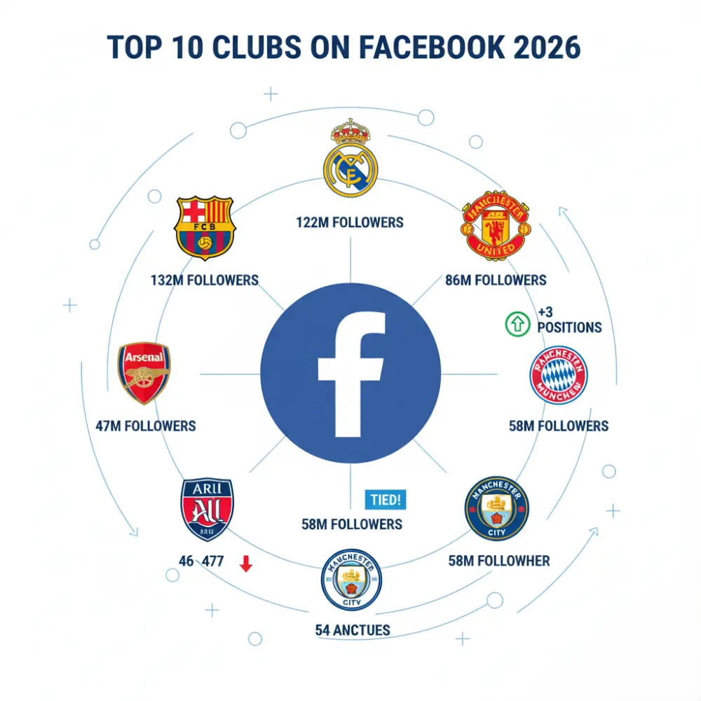 As the world’s most popular social networking site with over 3 billion users, Facebook remains a critical platform for football clubs to interact with their fans and build their global brand. In 2026, the most popular football club in the world, Real Madrid continues to dominate with 132 million Facebook followers, maintaining their position as the most-followed football club on the platform. Barcelona follows in second place with 123 million followers, while Manchester United holds strong at third with 86 million followers.